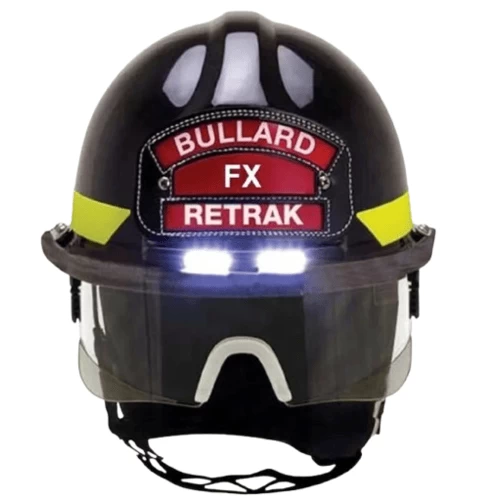 خوذة الحريق BULLARD FXTL مصممة من هيكل قوي من الألياف الزجاجية، بلون أسود أنيق، وتوفر حماية متينة وموثوقة في البيئات القاسية. تحتوي على درع وجه ، مما يعزز مستوى الحماية أثناء عمليات الإطفاء.