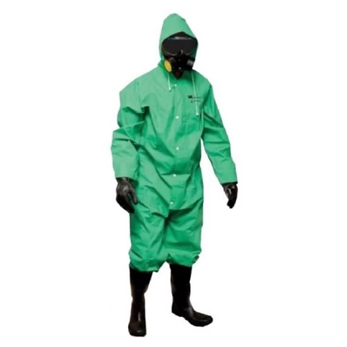 بدلة حماية مصنوعة من قماش PVC بوليستر، توفر حماية استثنائية ضد الأحماض والقلويات والمواد الكيميائية الخطرة، تم تصميم هذه الملابس خصيصًا للعمل في بيئات تتطلب حماية قوية ضد المواد الكيميائية، مع لحامات ملحومة لزيادة الأمان في المناطق الحساسة، كما تحتوي على ثلاث طبقات من PPP لضمان حماية إضافية، مصممة لتوفير راحة أثناء ارتدائها لفترات طويلة، تستخدم لحماية العمال في المعامل من المواد الكيميائية الخطر