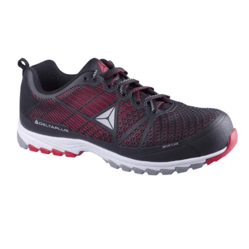 حذاء حماية رياضي يتميز بجودة عالية ومقدمة صلبة لحماية فعالة خفيف الوزن لون الأسود والأحمر مقاس 44 مقاوم للحرارة الي 300 درجة تصميم الجزء العلوي الشبكي يعزز حماية ومقومة القفازات لتأكل الجزئ العلوي، مما يضمن متانة أفضل في الأستخدامات الشاقة.